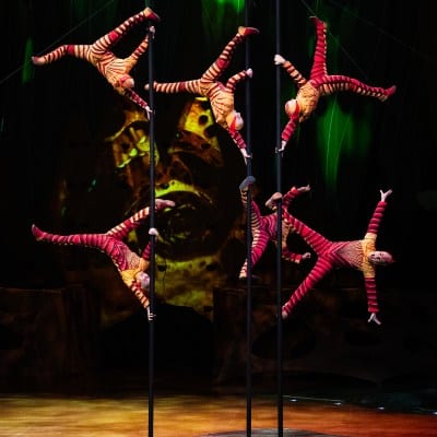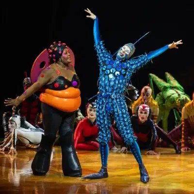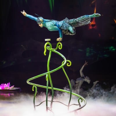 Bursting with breathtaking acrobatics inspired by insects, where crickets leap skyward, butterflies soar midair, ants juggle with precision, and spiders contort, bend and twist in defiance of gravity – each act showcasing the exceptional talent you expect from Cirque du Soleil.